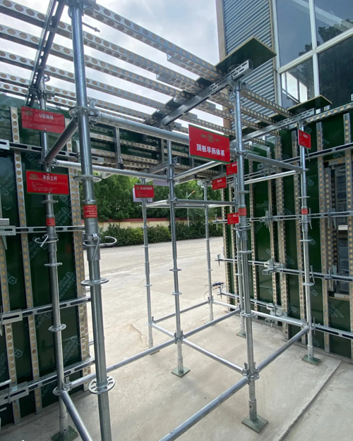 早拆立桿“一桿到頂”暨一體結(jié)構(gòu)更加穩(wěn)固、牢固,提高了結(jié)構(gòu)的安全性和穩(wěn)定性,杜絕了虛支、撓動和回頂,從而保證了混凝土成型質(zhì)量。